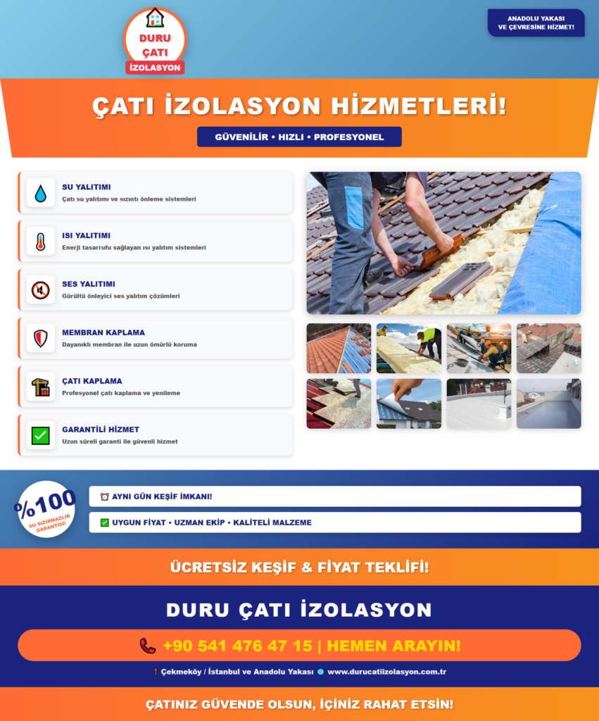 Üsküdar Çatı İzolasyon Ustası: 10 Yıl Garantili Su Yalıtımı Hizmeti Üsküdar’da yaşıyorsanız ve çatınızda su sızıntısı, nem problemi veya yalıtım sorunu yaşıyorsanız, doğru adrestesiniz. Üsküdar çatı izolasyon ustası olarak, 10 yılı aşkın deneyimimiz ve uzman ekibimizle profesyonel çatı su yalıtımı ve ısı yalıtımı hizmetleri sunuyoruz. Çatı izolasyonu, evinizin en kritik koruma sistemlerinden biridir ve doğru […]